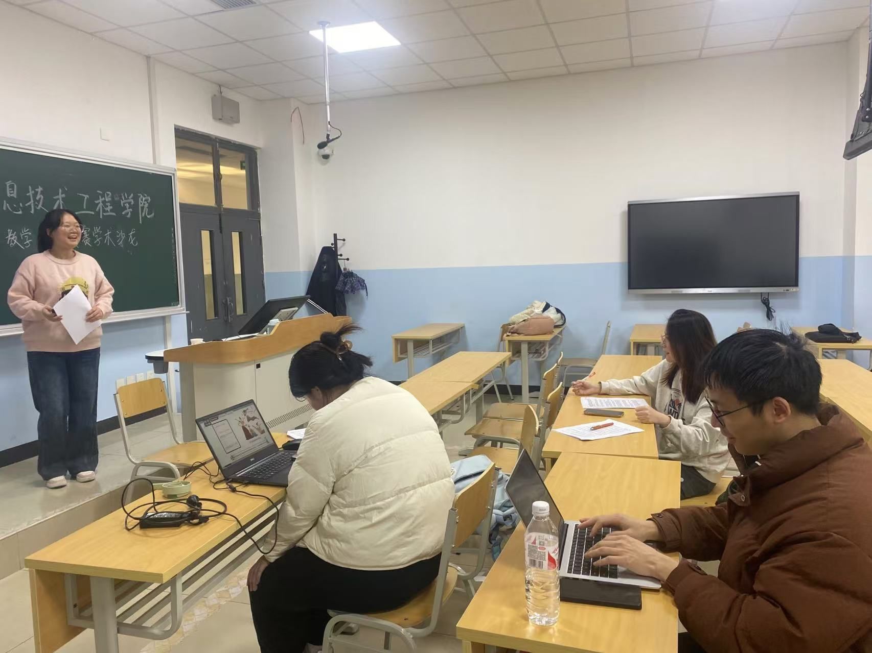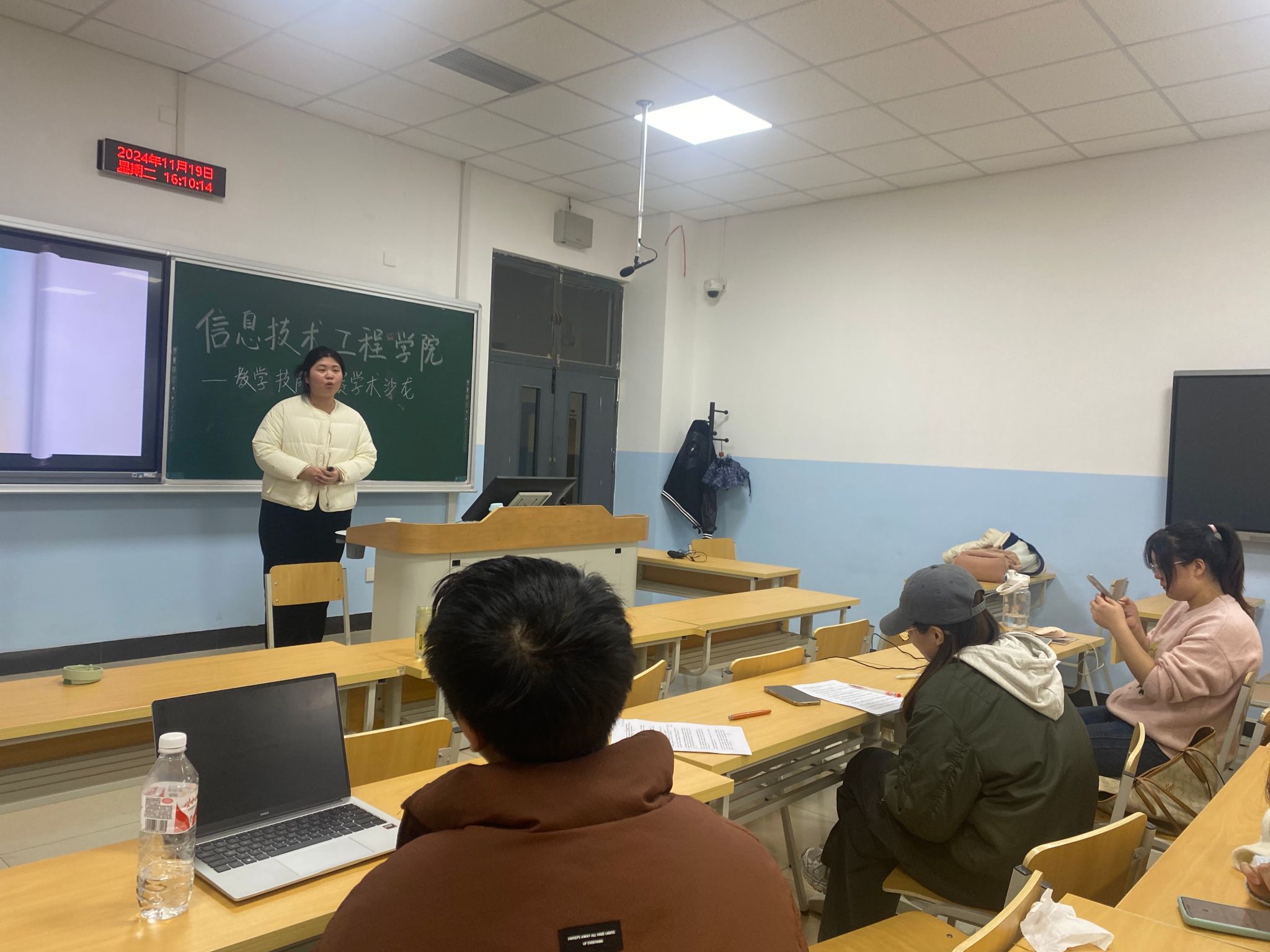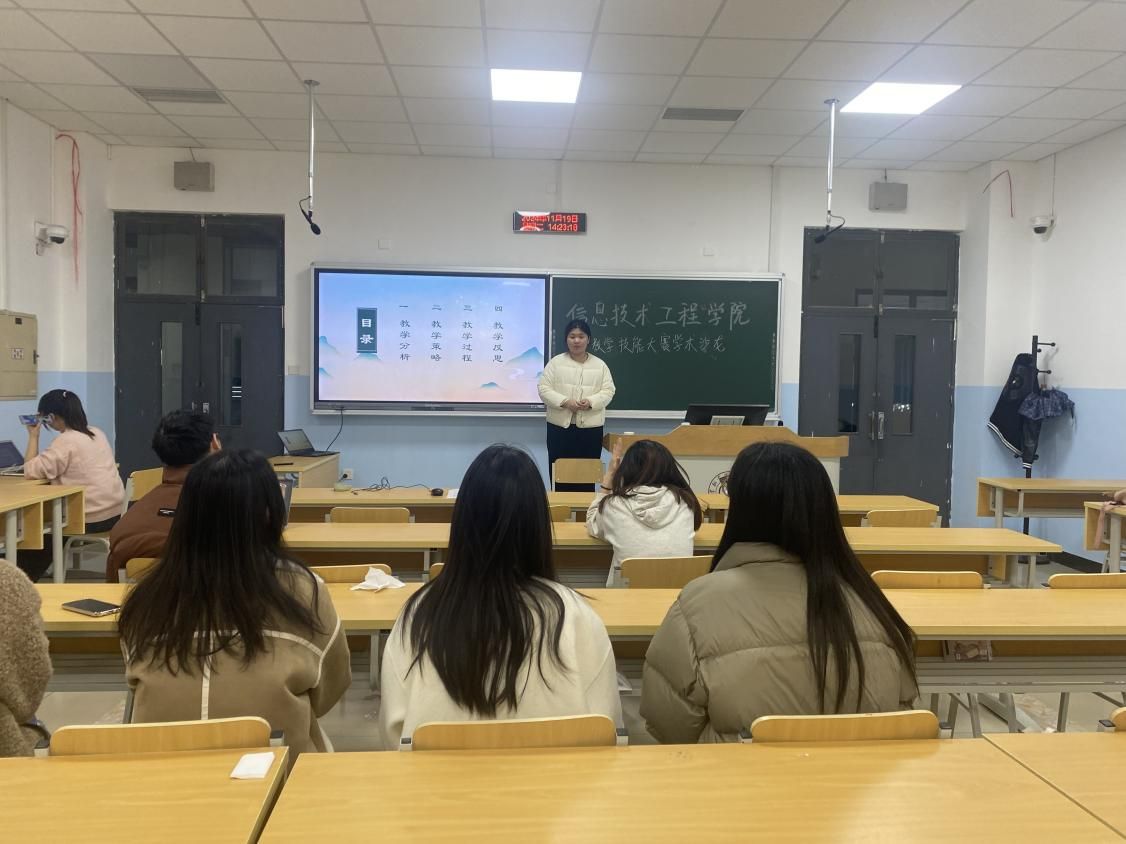 活动伊始,研信 22 级职业技术教育专业的张佳音同学和郭亚心同学分别展示了自己准备参赛的作品。在展示过程中,同学们认真聆听,并从 PPT 内容、体态、讲解语气等多个方面提出了宝贵的建议。同学们积极提出建议,为两位同学的参赛作品提供了优化方向。