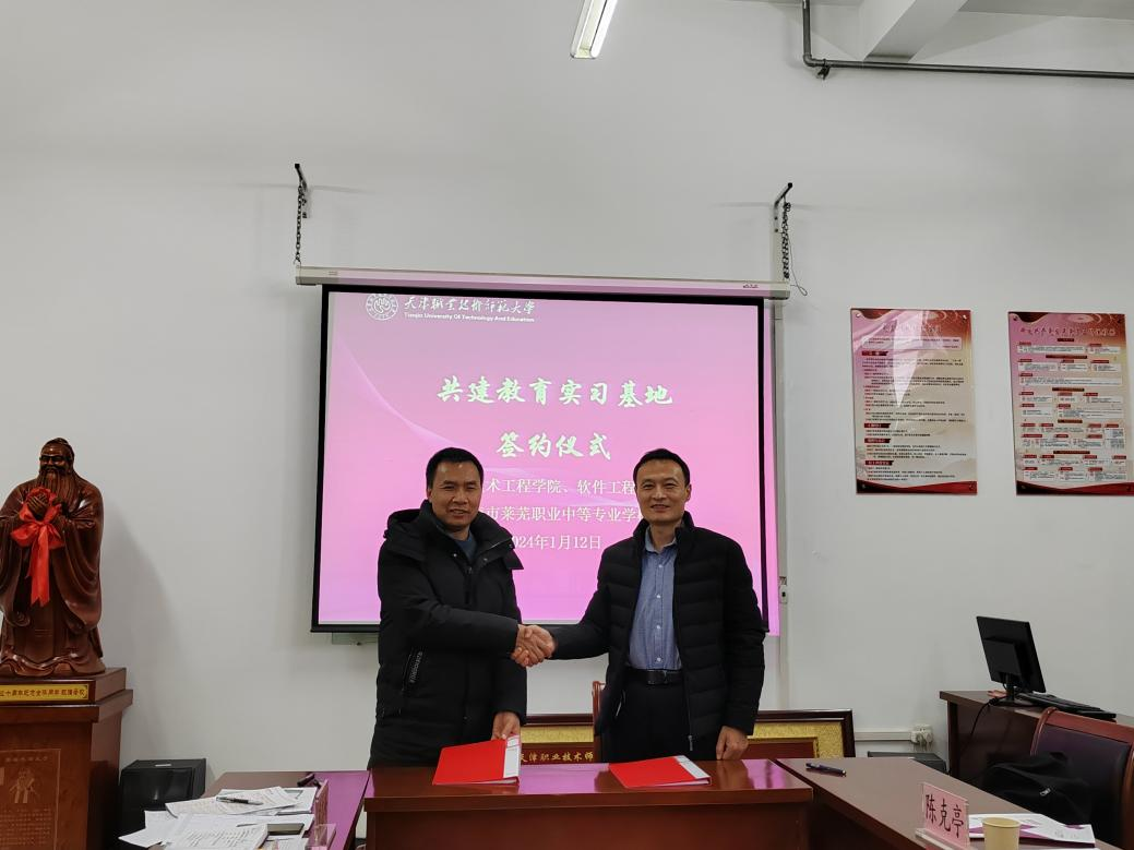 为了进一步加深公司间的深入合作,304永利集团官网入口与济南市莱芜职业中等专业公司《共建教育实习基地协议》签约仪式于2024年1月12日下午在304永利集团官网入口举行。济南市莱芜职业中等专业公司副董事长聂荣学、教科室主任陈克亭、教科室干事刘俊泉,以及304永利集团官网入口经理石连栓、党委书记蔡振山、教学副经理武志峰、党委副书记王蕾、相关系室主任出席了本次签约仪式。