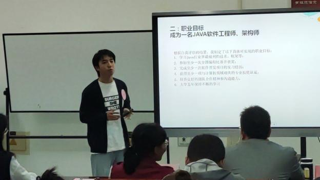 在展示环节中,同学们结合个人情况专业发展方向进行了详细的阐述,在就业赛道中,有选手对代码及其专业热情不减,致力于技能发展,进入大型公司施展身手;有选手想一生都投入西部职业教育之中,做一名优秀的中职教师;在成长赛道中,有同学在大一就制定了明确的目标,立志不断在实践中积累经验,学会不断地学习反思。有同学根据自身、环境等综合分析,认为自己比较适合成为一名公务员,并制定了短期计划和长期计划。
