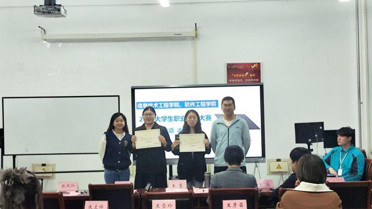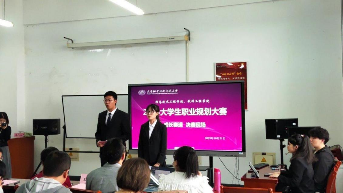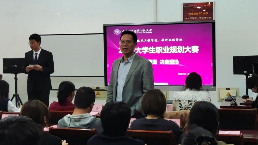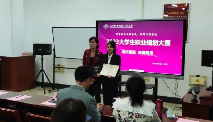 本次比赛分为就业赛道和成长赛道,分别于10月27日和10月31日在a教1012举办。比赛分为主题陈述(5分钟)、PPT展示、评委提问(2-3分钟)三个环节。公司党委副书记王蕾、软件工程系主任彭英慧、副教授罗梅、网络工程系主任张建勋、大数据系青年教师李敏及公司辅导员出席比赛并担任评委。