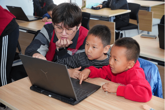 社区的孩子们表现出了极高的热情和求知欲,社区活动室化身为“AI启蒙课堂”。他们积极参与互动环节,在支部党员带领下,一步步尝试编写自己的小代码。许多孩子从一开始的好奇到后来沉浸其中,在完成一个个小任务时,脸上洋溢着自豪的笑容。