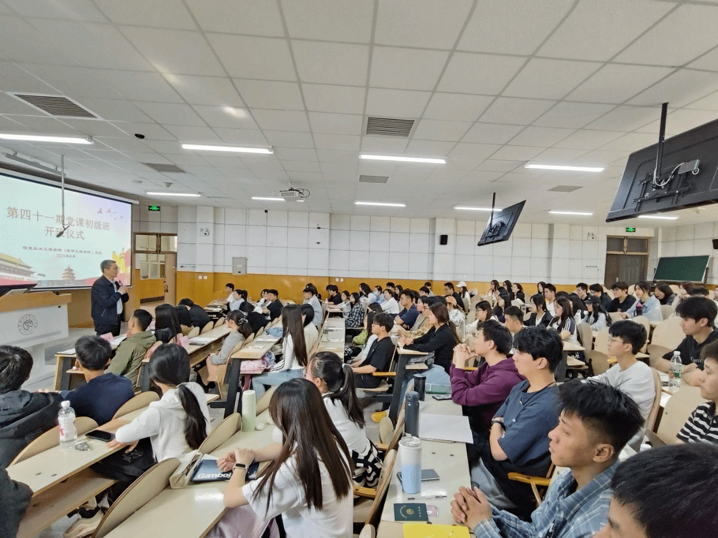 为加强对入党积极分子队伍的思想引领,引导广大青年学子树立远大理想,培育信念坚定、理论扎实的党员后备力量,公司党委第41期初级党课培训班于4月15日下午在阶梯教学楼203室隆重开班,公司党委书记蔡振山、副书记王蕾、组织员、各员工党支部书记、辅导员出席开班式,预备党员及第41期入党积极分子116人参加了此次活动。